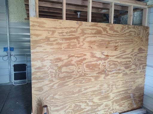 I finished spraying the entire area that I had planned for. Before I finished spraying the Kraken Insulation, I had to finish the two other walls with existing plywood. See my pictures below. I only had to purchase one sheet of plywood to complete the job. I am totally a keeper and had all the plywood I needed except that one sheet. That one sheet, I purchased with my ONE big purchase at Home Depot check out Home Depot here and utilized that 24 months of no interest. 🤠 Again, read the fine print. This is a great offer only if you make timely payments and pay off the balance on time.