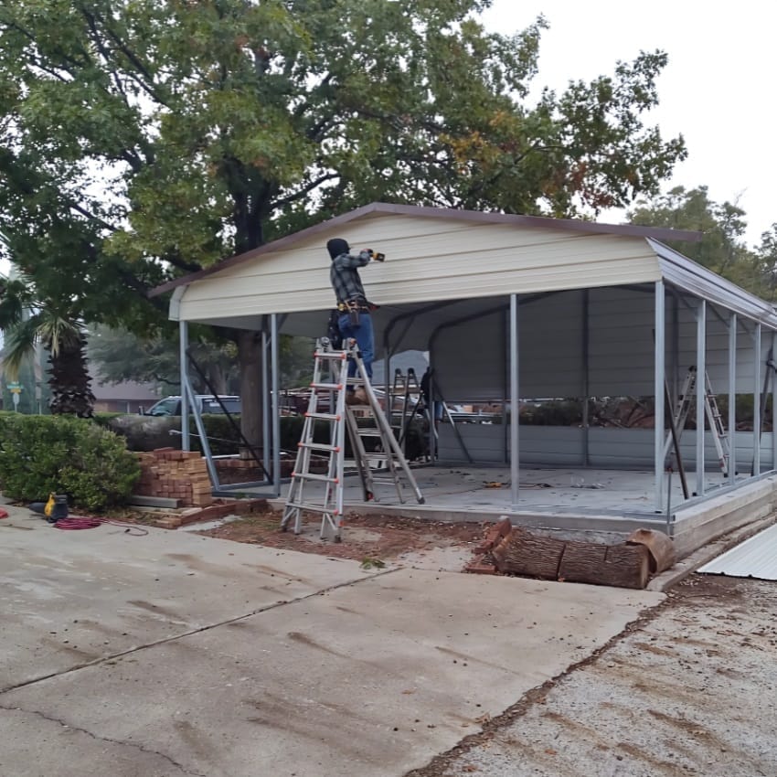 The slab looks great! Full curing of the cement can take up to 28 days. I now have plenty of time to call Zach and schedule two consecutive days for the Shop to be installed. * In Chapter two, I mentioned, “whether you're a Texas guy like me or not, you may find my story interesting”. Well I called Zach out in North Carolina. Less than a week later, I received a call from a Steel Company in Joshua, Texas. Hmmmm . O.K…at least I’m receiving good communication. We scheduled the days and times. When it came for the first day of install, three Mexican American gentlemen showed up. Of course me being the conversationalist that I am…”where you fellas from?” I asked. They answered, “Dallas, Texas”. I asked, “not from Joshua?” “No Sir, Dallas.” they replied. 🤔 Hmmmm, “Sometimes, you just got to wonder”. Well, I let them work. See my pictures below.