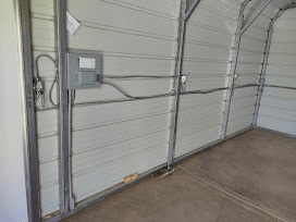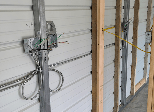 Derrick and Corbin are very efficient. The new breaker box is installed and wires are now flowing up and around the shop interior.