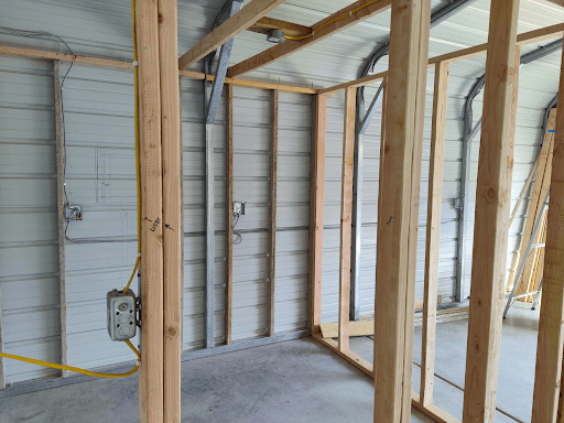 It is coming along real good. Again, Derrick and Corbin make it look real easy. Question from Derrick, “I understand you want the light switch on the left side, looking into the office?” I replied, “yes Sir”. I was stunned just for a moment and had to ask myself. “Am I wrong?”...🤔 As we were looking at the door frame from the outside, when the door is installed, the “door knob” is going to be on the LEFT. Hmmmm🤔 “Sometimes, you just gotta wonder”. Check out my Note below on this subject of the door KNOB..