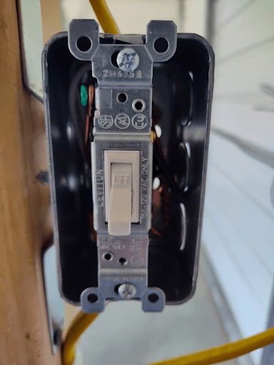 Two light switches. One for the side door entrance to the shop and one for the office.